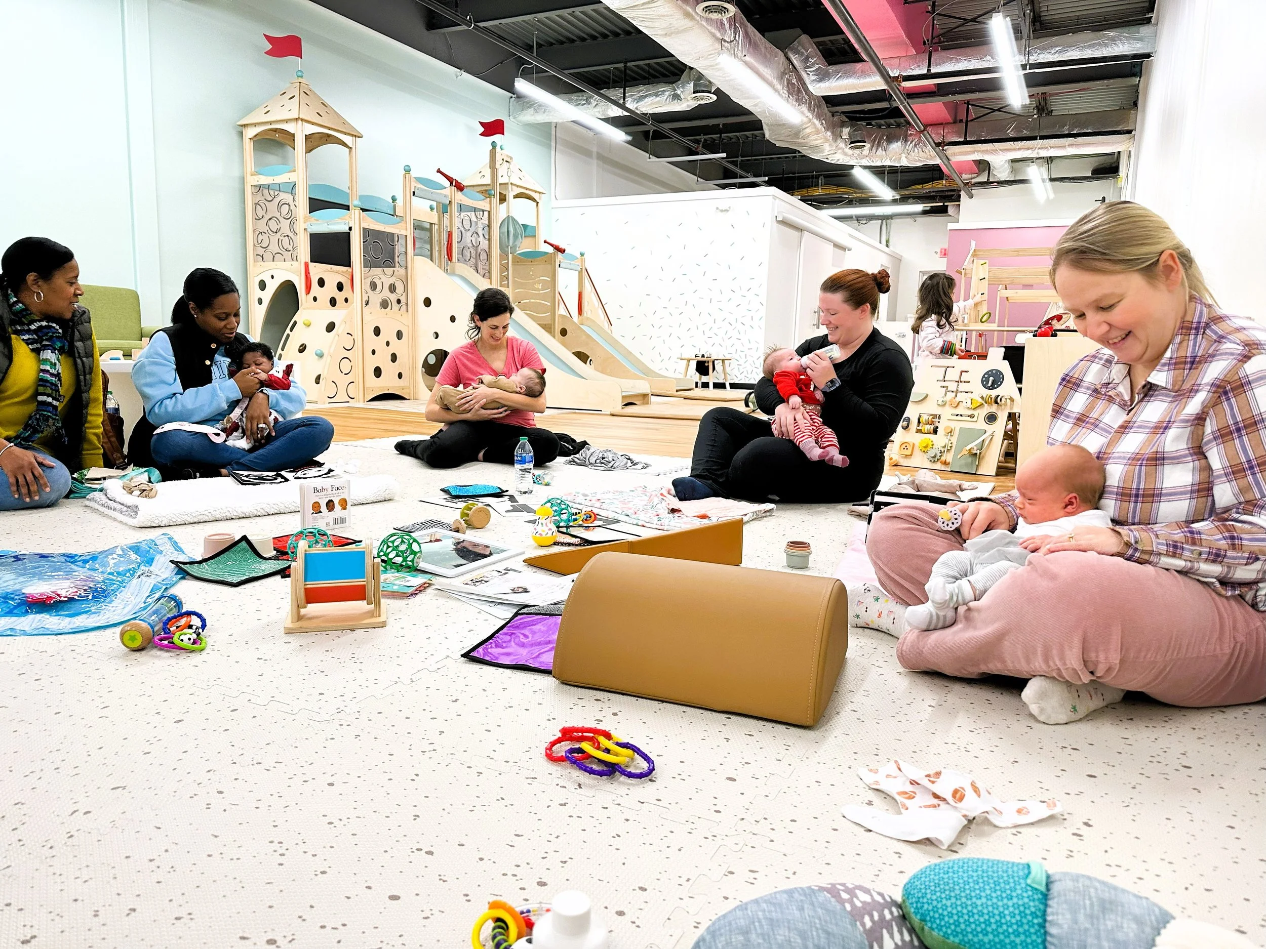 Open Play Reservations are closed during group time so the space is reserved for this group of parents/babies/siblings only. This limits overstimulation for our tiniest “Nesters” & helps protect their growing immune systems.